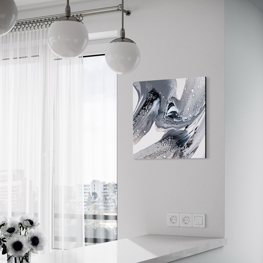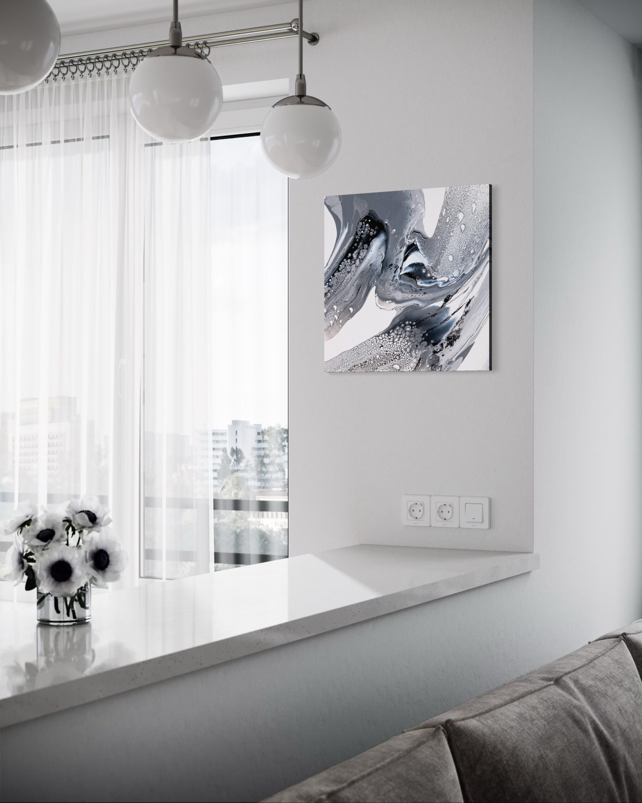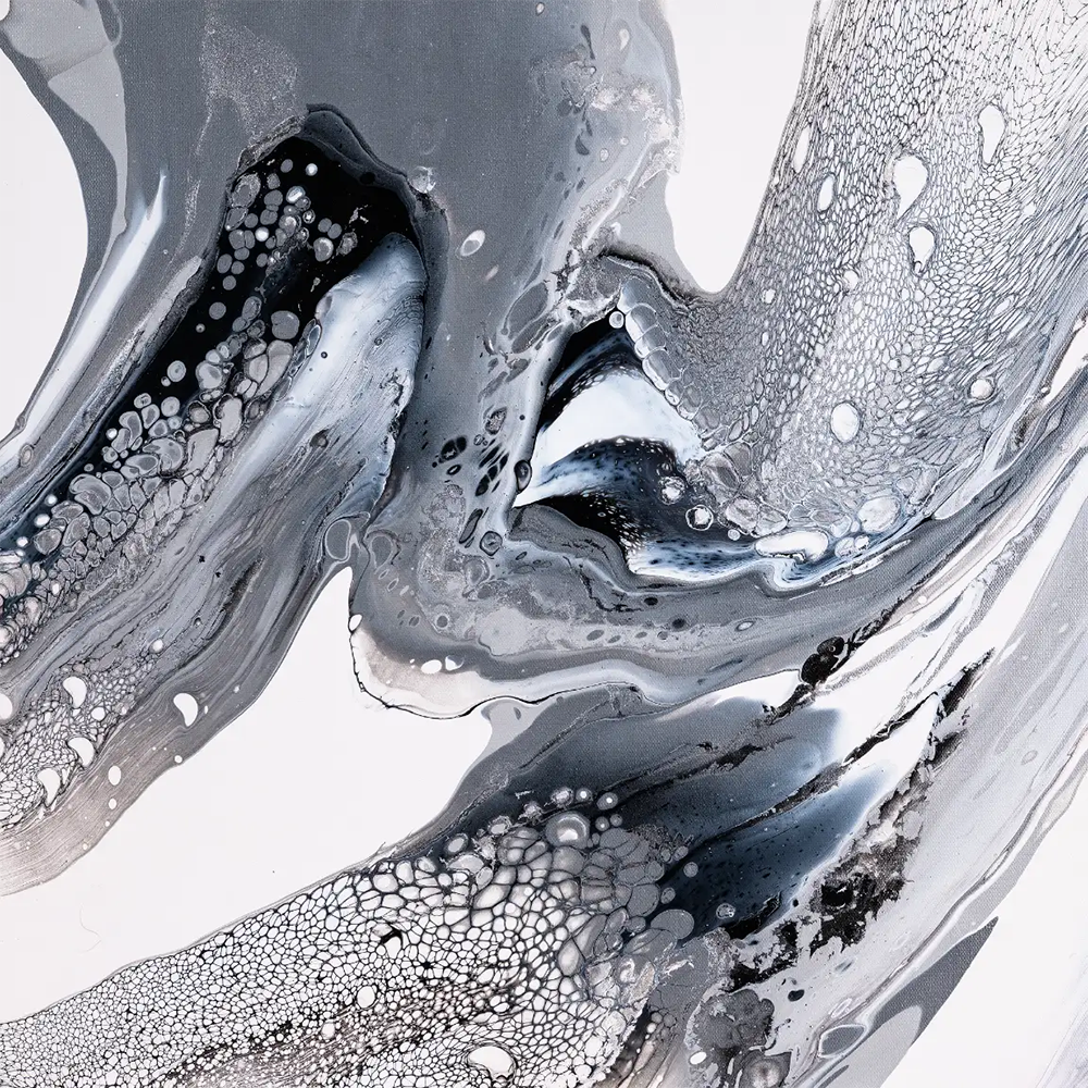 Dieses Werk besticht durch seine elegante Klarheit – ein Spiel von fließenden Farben und Formen. Die feinen Zellstrukturen verleihen eine fast organische, geheimnisvolle, schwebende Tiefe. Es wirkt ruhig und kraftvoll zugleich – wie ein Gleichgewicht zwischen Chaos und Stille.