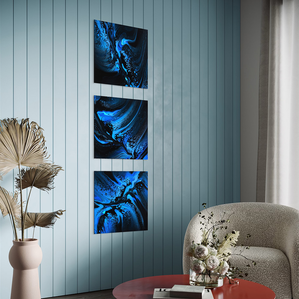 Diese Werke atmen miteinander, wie Wellen, Licht, Strudel … sie erzählen vom Fließen, vom Loslassen und vom Eintauchen in die Tiefe der eigenen Emotionen. Diese Energie zieht dich in ihren Bann. Der Preis gilt für das Set aus 3 Bildern.