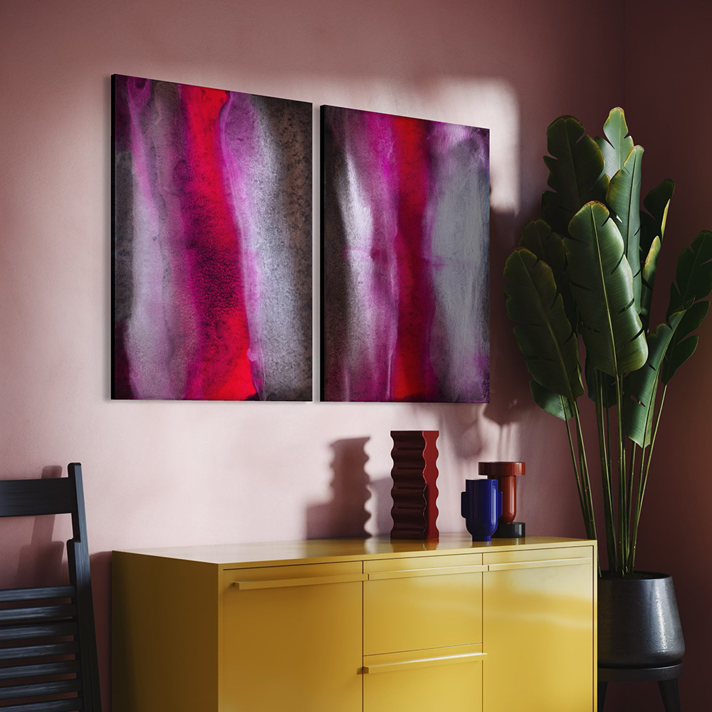 Diese minimalistische Farbharmonie erzeugt faszinierende Lichtbahnen, eine sinnliche Spannung zwischen Wärme und Kühle, Stärke und Sanftheit. Aufsteigende Energie oder pulsierendes Leben. Wie stark ist die emotionale Präsenz für dich? Ich mag es, wie zwei zusammengehörige Seelen.