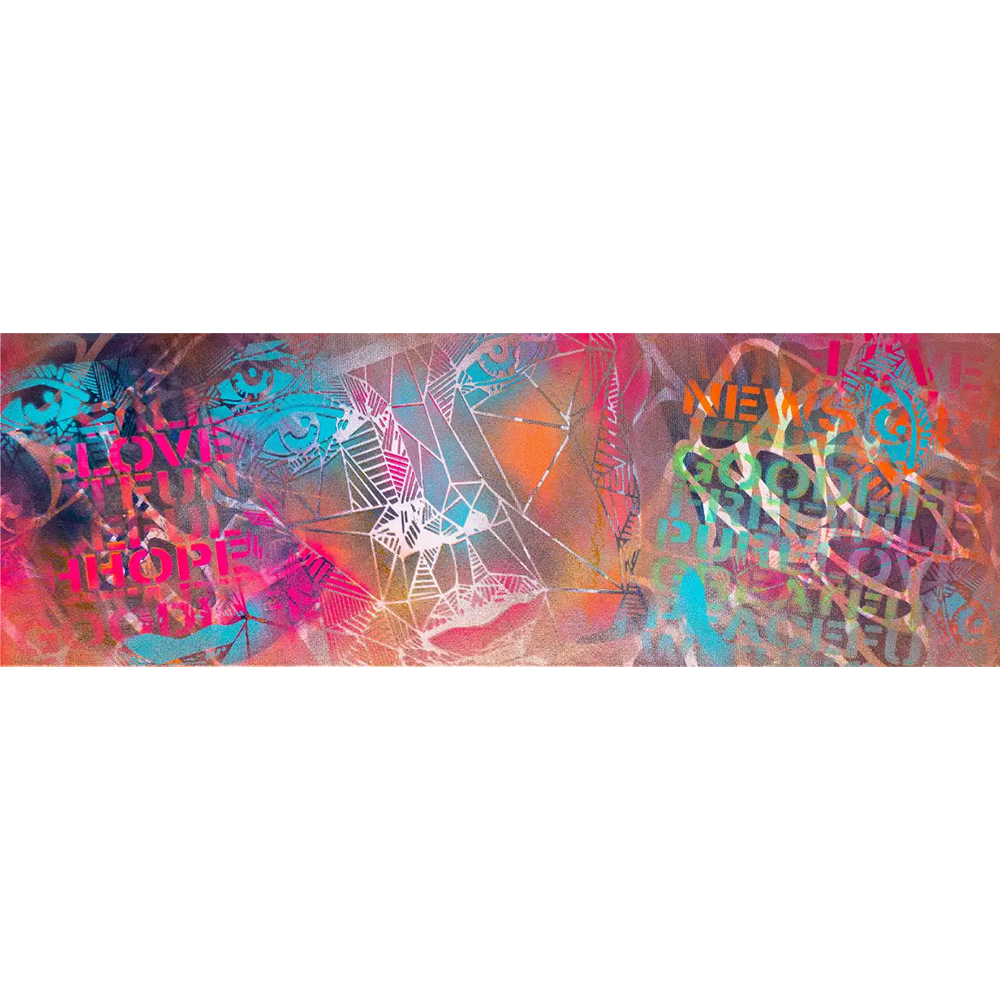 Hier verschmelzen kraftvolle Schriftzüge mit einem wachsamen Auge an die Hommage der Offenheit, Lebensenergie, Freiheit und Hoffnung. Eine etwas wildere Seite von mir.