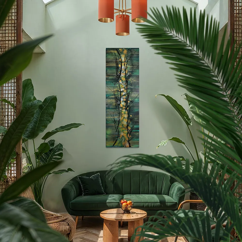 Ein Gefühl von Wachstum und Verbundenheit lädt den Betrachter ein, über die eigene Beziehung zur Natur und der Bedeutung des Lebens nachzudenken. Ein Symbol an das wunderbare Leben, dieses Werk sprüht vor Energie. Beim Arbeiten habe ich mich von dieser Energie direkt anstecken lassen.
