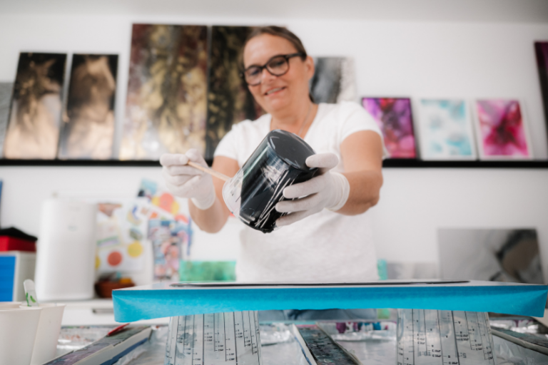 - Auswahl der gewünschten Techniken: Acryl Pouring, Kunstharz oder Tinte.