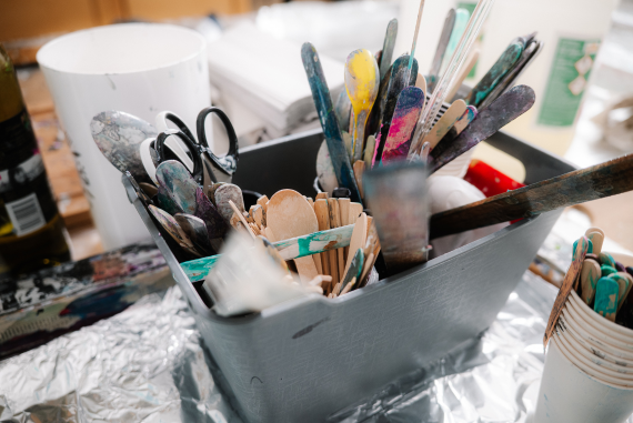 Vor allem gute Laune und Freude am kreativen Arbeiten. Bitte achte zudem auf geeignete Kleidung, die auch einmal Farbspritzer vertragen darf. Komm einfach vorbei, hab Lust auf Kreativität und um alles andere kümmere ich mich!